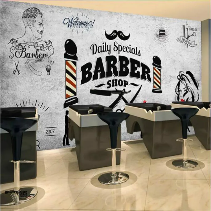 Retro Hair Salon Background Wallpaper Mural for Hairdressing Barber Shop Background Wall Decor Mode